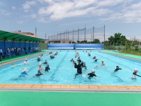 今日は3年生にとって初めての水泳の授業でした。今日もいい天気で気温も高く,子どもたちは気持ちよさそうに水に入っていました。