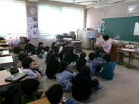 「生物どうしは,食べ物を通じてどのようにつながりあっているだろうか?」という問題を考えていました。具体的な例として,カレーライスやツナサラダなどの身近な食べ物の中に入っている材料は,それぞれどのようなつながりがあるのかを,発表ノートに記入していきます。例えば,ヨーグルト→牛乳→牛などです。みんなしっかり考えたり調べたりしながら,生物どうしのつながりについて考えることができました。