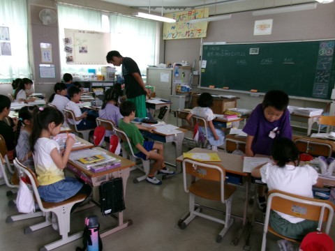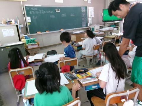 「買い物調べ」のまとめをしていました。何日か分の買い物を書きだして,食料品や日用品などに分類していきます。スーパーでの日々の買い物では,食料品が圧倒的に多いことが分かりました。