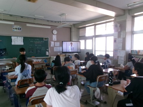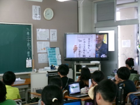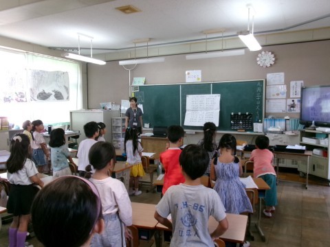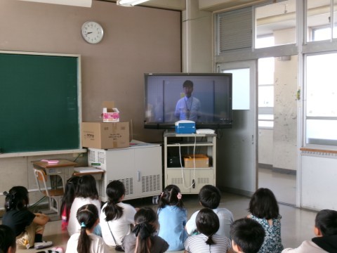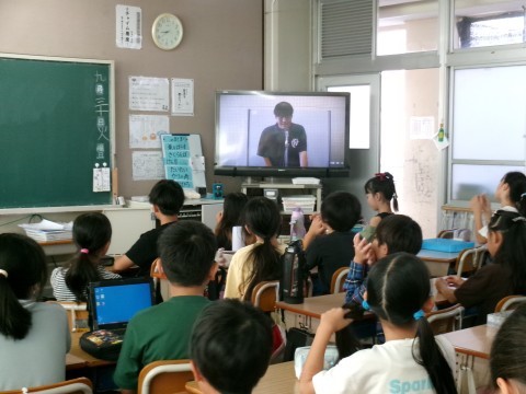今日はTV朝礼の日でした。まず校歌を歌った後,校長先生の話を聞きました。今年の夏の暑さについてと,連運と連音,そして今日の参観日の話でした。