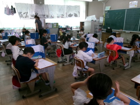 「やくそく」という単元のテストをしていました。みんな頑張って取り組んでいました。
