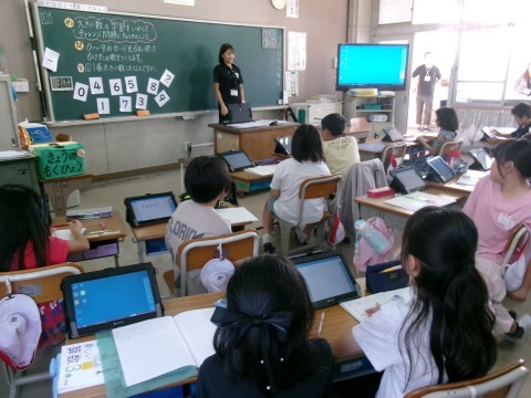 「大きい数の学習をいかして,チャレンジ問題に挑戦しよう」というめあてで学習を進めていました。具体的には,0から9までのカードを6枚使っていろいろな数字を作っていきます。一番大きい数や一番小さい数などを考えていました。