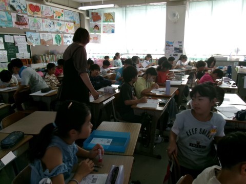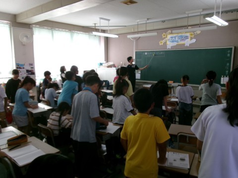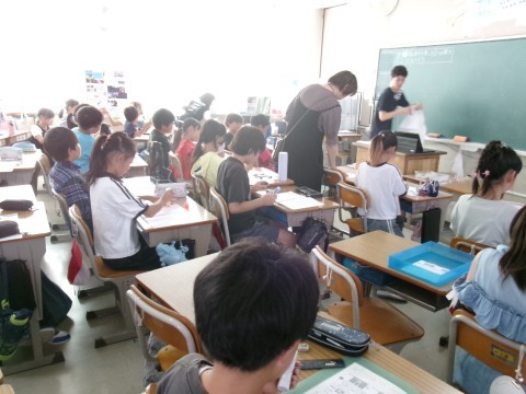 「倍の見方を使って2つの数をくらべよう」というめあてで学習を進めていました。写真は,「めあて」を読んだり,問題が書いてある紙をノートに貼ったりしているところです。