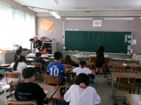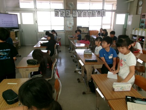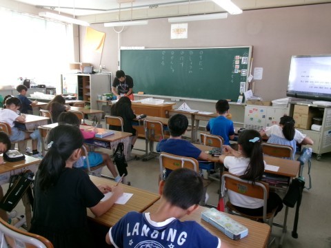 漢字のミニテスト(5問)をしていました。20級から始まり,100点を3回取ると1級進級するそうです。上の級をめざして,みんな一生懸命取り組んでいます。