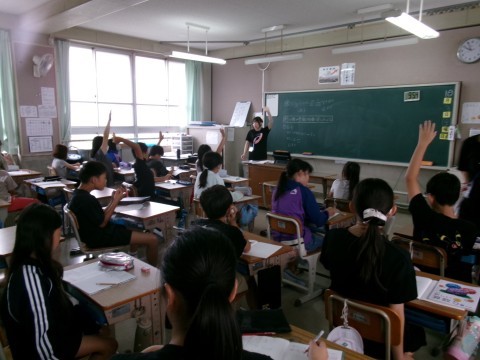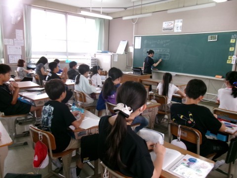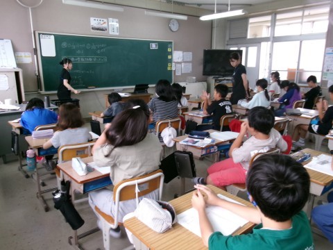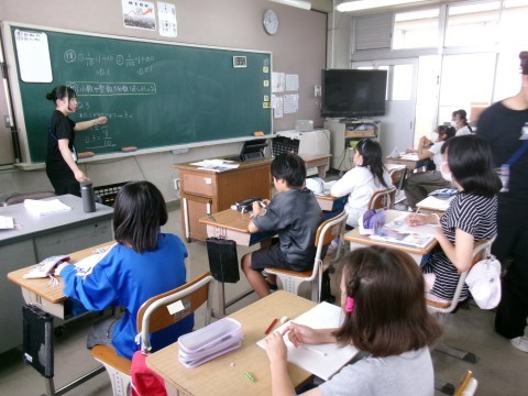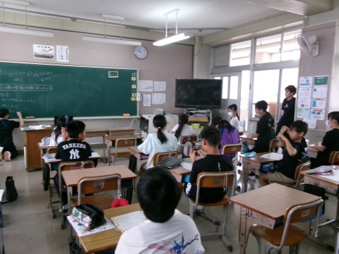 「小数や整数を分数で表そう」というめあてで学習を進めていました。前回は,分数を小数で表す方法を考えましたが,今日は逆のパターンです。