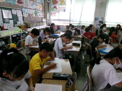 「ごんぎつね」の学習をしていました。「ごんはどんな気持ちで兵十に近づいたのだろう?」というめあてで学習を進めています。ワークシートに自分の考えを書いていました。