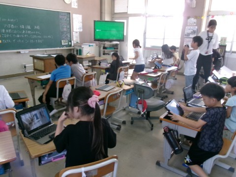 はとぶえに応募する作品を考えていました。校内で自分が描こうと思う場所をタブレットで撮影して,その写真を見ながら描いていきます。どんな作品ができるか楽しみです♪
