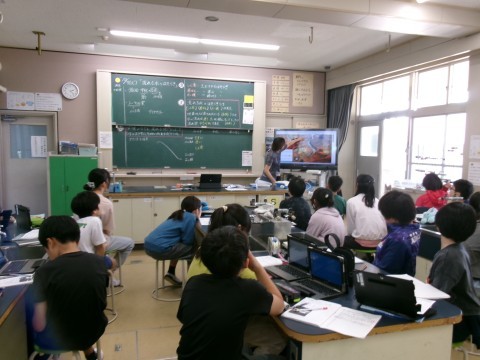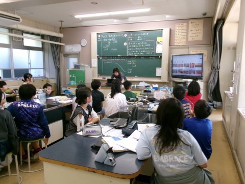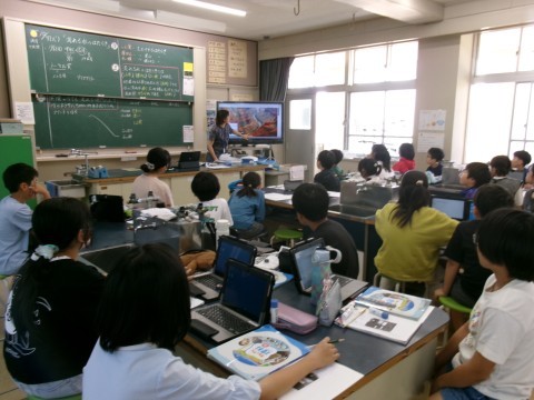 「流れる水のはたらき」という単元を学習していました。今日は,アメリカのグランドキャニオンの写真を見ています。キャニオンの中を流れているコロラド川によって,浸食が起こったことを説明していました。