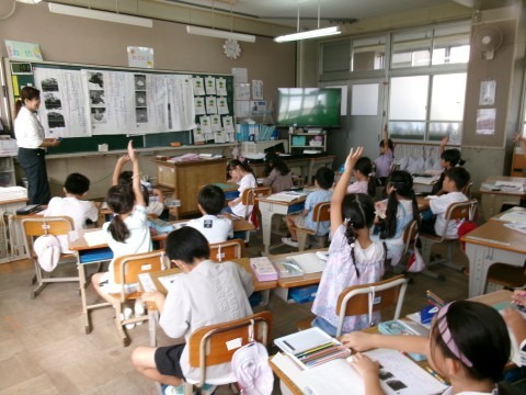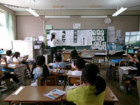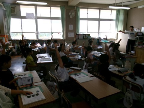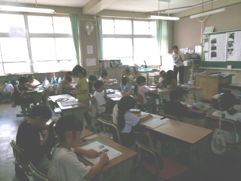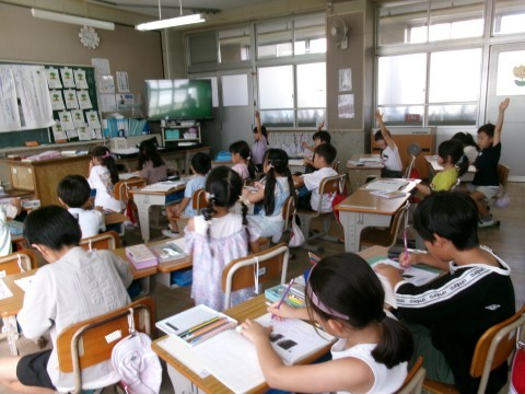 「うみのかくれんぼ」という説明文の教材を使って学習を進めていました。文章から,「何が」「どうやって」「どこに」かくれるのかを読み取り,発表しています。