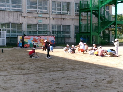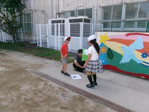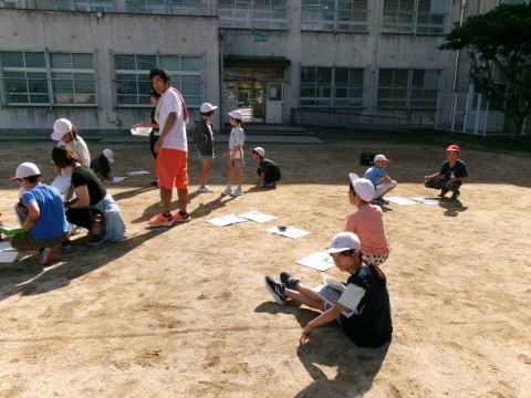 「日なたと日かげの地面の様子」について調べていました。土を直接触ってみて,感触や温度差を体感するとともに,温度計で実際に測って確かめていました。