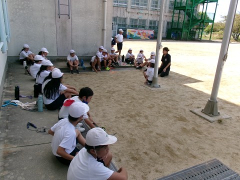 今日は少し暑かったので,途中でしっかり日陰で休んで水分補給もしながらの練習です。その時に,どのハードルのコースが跳びやすいか,あるいは試してみての気づきなどの交流もしていました。