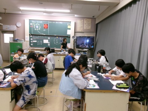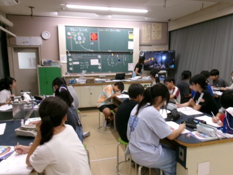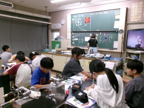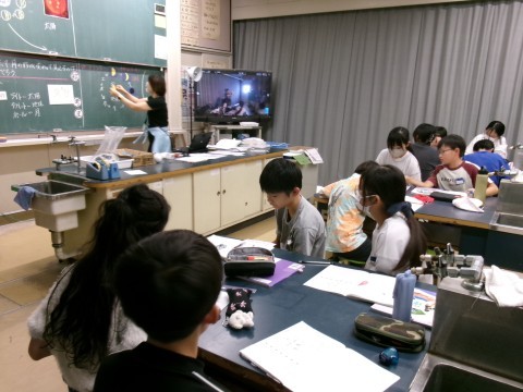 「月と太陽」という単元を学習していました。月の満ち欠けを,部屋を暗くして電球を使って試してみることで,実際の見え方の理由を確かめることができました。