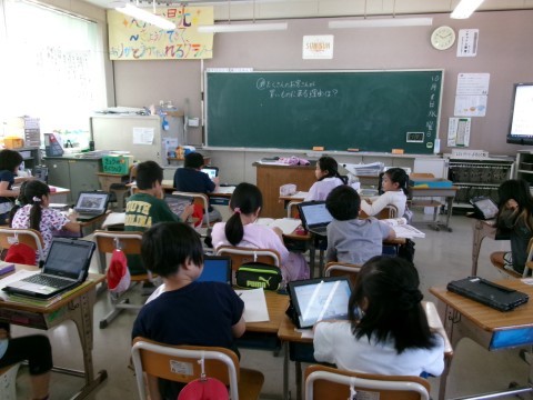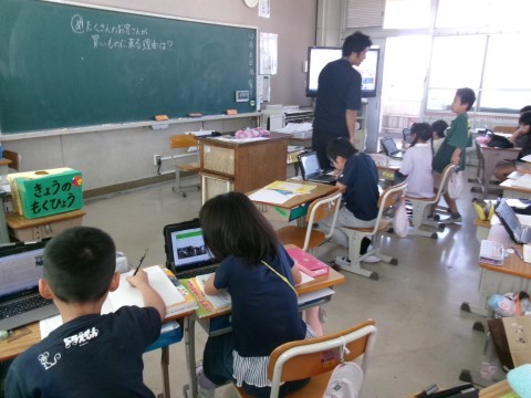 「スーパーにたくさんのお客さんが買い物に来る理由は?」ということを考えていました。自分で考えたり,インターネットで調べたり,教科書で調べたりしながら考えていきます。