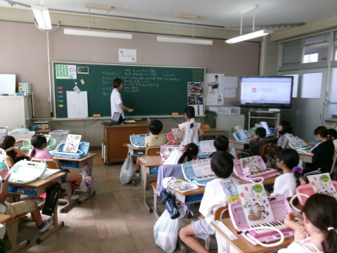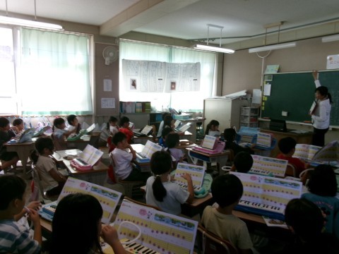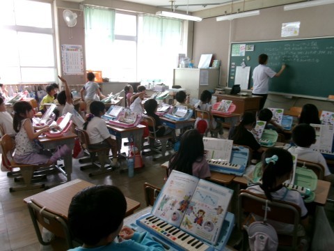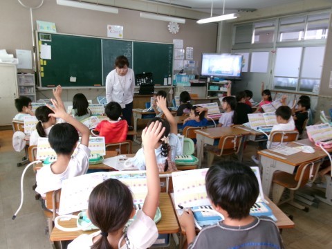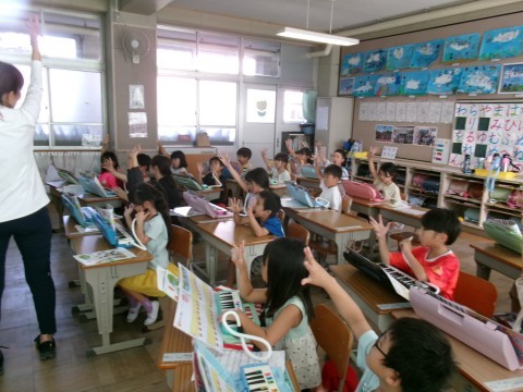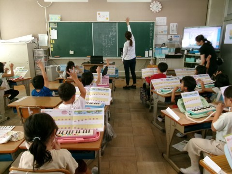 2組は鍵盤ハーモニカの練習をしていました。「もぐりっちょ」という曲です。みんなで指の動かし方を確認しながら演奏していきます。