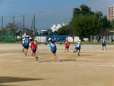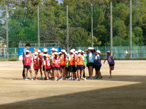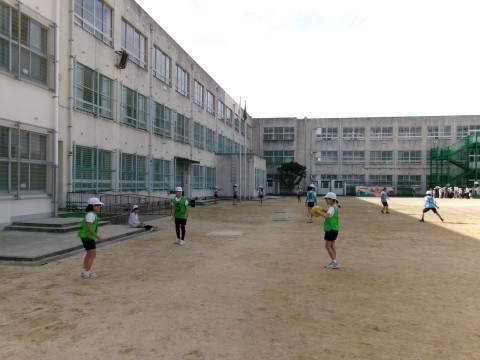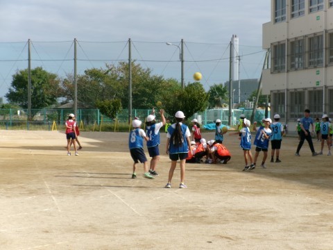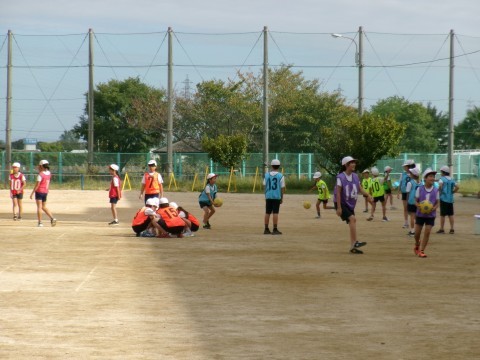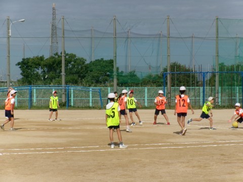 まずは全員で基本的な練習を行った後,ラインポートボールの試合をしていました。今日も2つのコートに分かれて,2チームずつで試合をしていきます。残ったチームは自分たちで練習内容を考えながら練習していました。