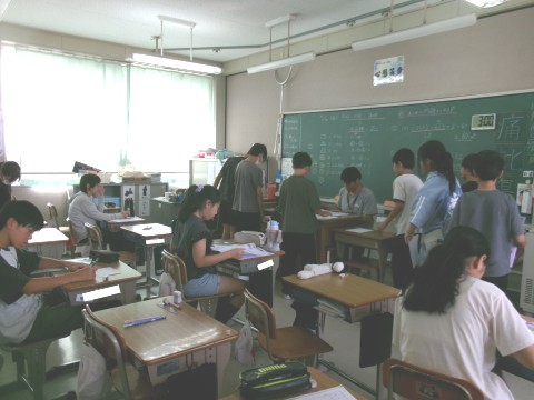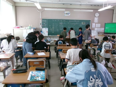 「まとめの問題をしよう」というめあてで復習問題に取り組んでいました。算数ドリルなどの指定されたページに取り組み,終わったら先生に確認してもらっています。