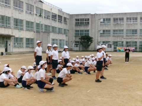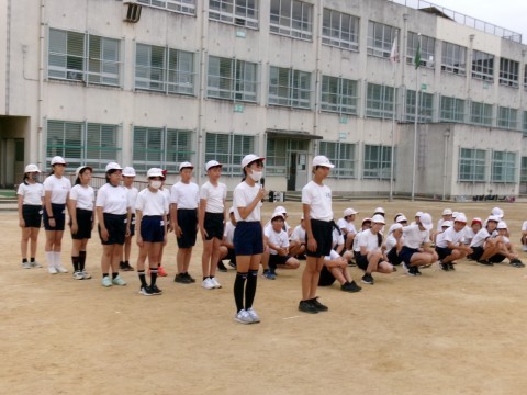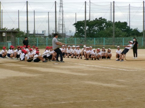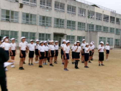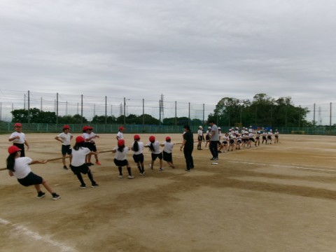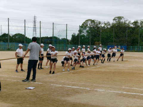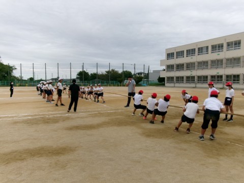 連合運動会の激励の会の練習をしていました。来週の火曜日の全校朝会で,決意表明と種目ごとに競技内容を少し披露する予定です。その後,最後の綱引きの練習を行いました。