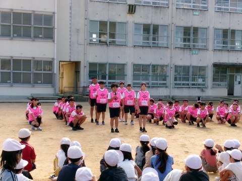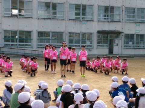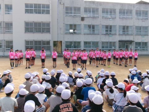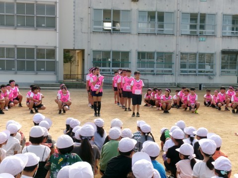 今朝は連運に出場する6年生の激励会を行いました。最初に5年生から激励の言葉を受け,次に6年生が決意表明を行いました。
