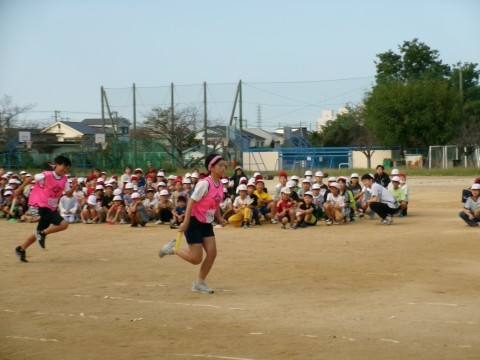 その後,実際に参加する種目のデモンストレーションを,代表の何人かの選手が行いました。6年生の力強い姿に,下級生はみんな感心したり驚いたりしていました。