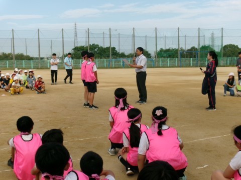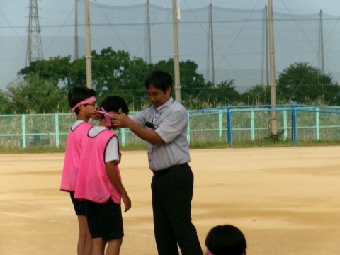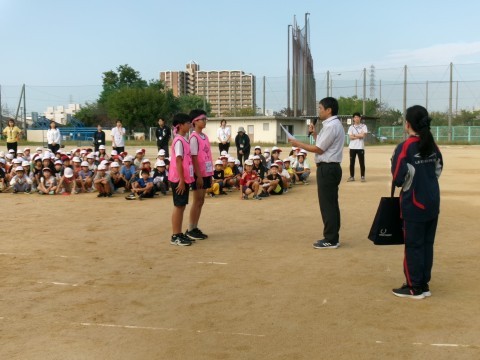 激励会が終わった後,昨日行われた「市民オリンピック大会」の男子リレーの部で準優勝となった子たちの表彰を行いました。この種目は,小学校区ごとに小学生2人,中学生2人が100mずつ走る400mリレーです。本校の6年生男子2人と中学生2人の4人が出場し,見事準優勝を勝ち取りました。それぞれに賞状とメダルをいただいています。93の校区の中での2位なので,素晴らしい記録だと思います。おめでとう!