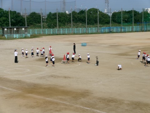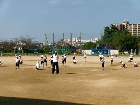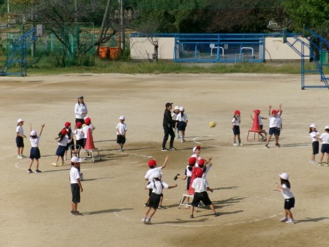 準備運動で,今日の「なわとびチャンピオン」を決めていました。一定時間,前跳びでひっかからなければチャンピオンになれます。今日は何人かがチャンピオンになっていました。準備運動の後は,的当てゲームをして楽しんでいました。
