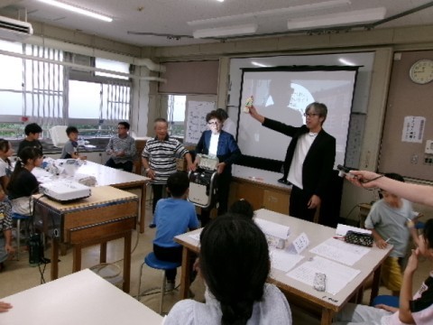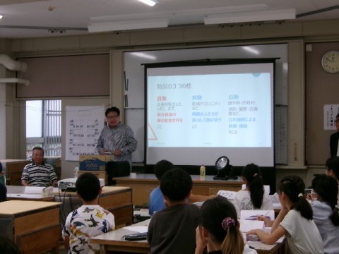 今日は八下西校区自治連合会自主防災会の皆さんに講師として来ていただき,防災教室を行いました。