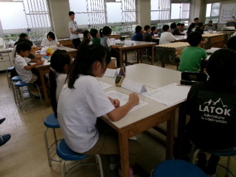 みんなから集まった防災に関する質問に答えていただいたり,防災バックや備蓄倉庫について教えていただいたりと盛りだくさんの内容でした。みんなは今まで学習とつなげてお話を聞き,メモを取っていました。