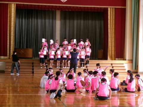 学年全体で,連運の記念写真を撮っていました。その後は,グループに分かれて「八下西フェスティバル」の内容について,アイディアを出し合っていました。