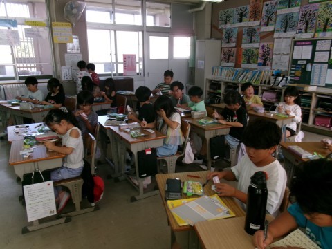 九九の計算カードに名前を書いていました。もし落としても大丈夫なように,すべてのカードに名前を記入していました。