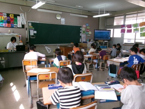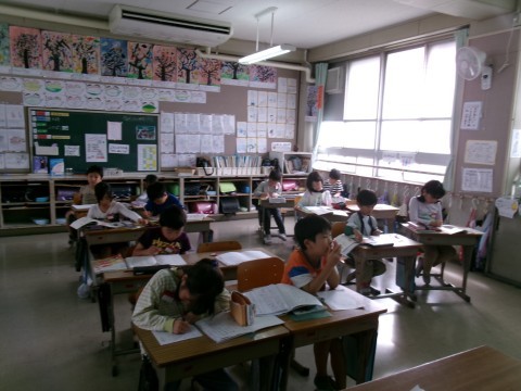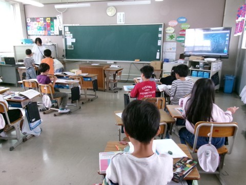 「秋がいっぱい」という単元の学習をしていました。「秋」に関連する言葉をイメージマップでたくさん出し合い,それをもとにして思い思いに詩を作っていました。