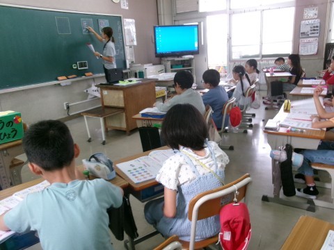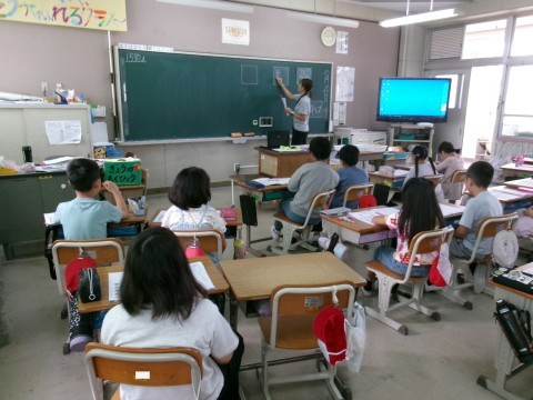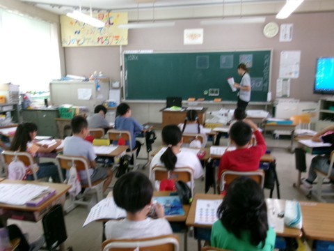 新出漢字の練習をしていました。今日は「和」と「駅」,「皮」です。みんな一生懸命練習していました。
