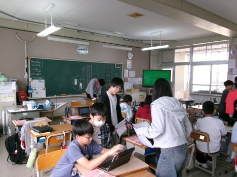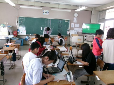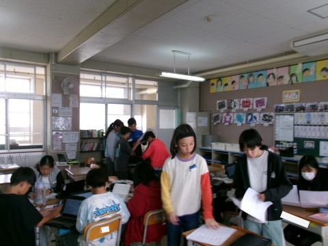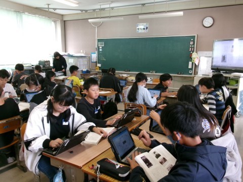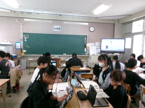 どちらのクラスも,宮沢賢治の「やまなし」という物語文の学習に入っていました。1組は「やまなし」の「5月」と「12月」の場面を比べて違いを考え,意見交流していました。2組は,まず宮沢賢治の伝記資料「イーハトーブの夢」を読んで,賢治の生き方や考え方について理解を深めていました。