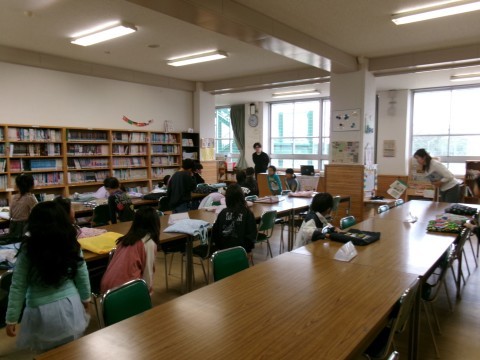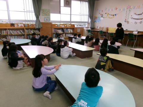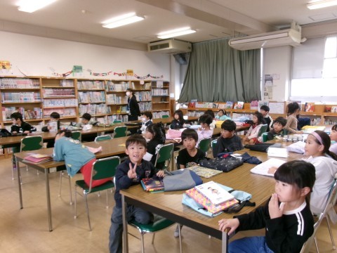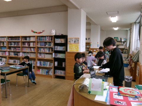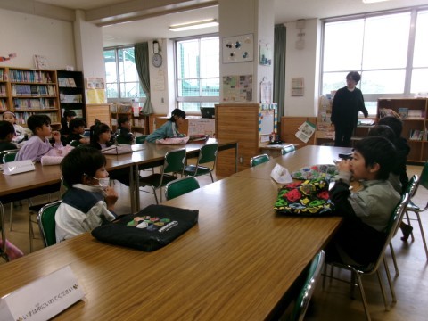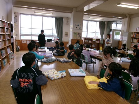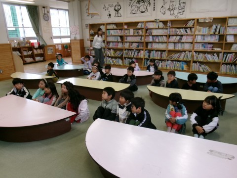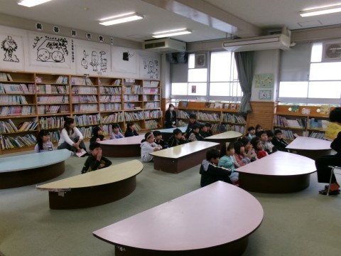 図書室に行って,借りた本を返した後に,自分が気に入った本を借りていました。新刊の紹介もしてもらいました。その後で,読み聞かせをしてもらっています。