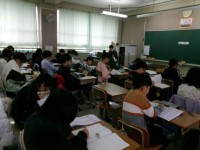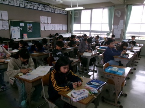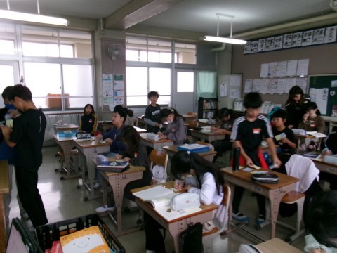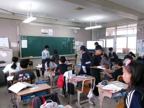 「よりよい学校生活のために」という単元で,今日はテーマを「廊下が汚れているのをどうしたらよいか」ということに絞って考えていました。付箋に解決方法(黄色)と理由(青)を書いて,前の教卓に提出していきます。たくさん解決方法のアイディアを考えた子もいました。