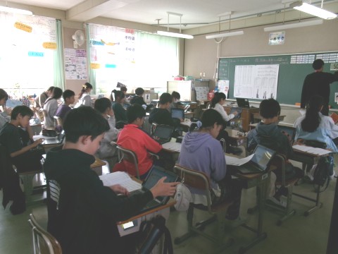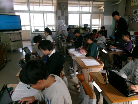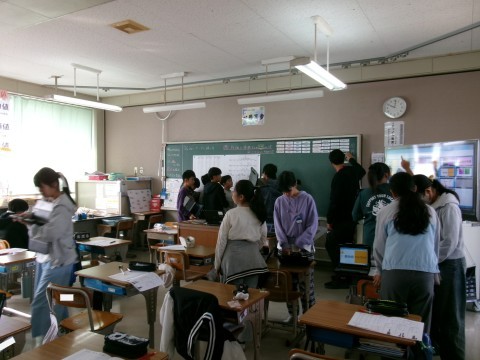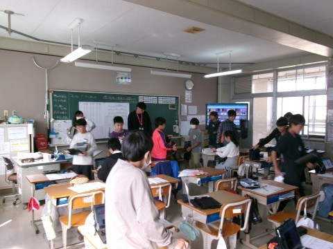 なわとびを跳べた回数の表をもとに,3つのクラスの中で,何組が優勝するかを考えていました。その際の根拠になるのが表をグラフに表したものです。中央値や最大値,最頻値などの言葉や意味も学習しながら,根拠をもとに判断してそれを交流していました。