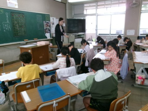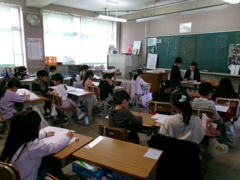 前回の授業で,「先生のひみつ」についていくつか文を考えていました。今日は,それを活かして「家族(お父さん,お母さん,おねえちゃんなど)のひみつ」について,文を考えていきました。