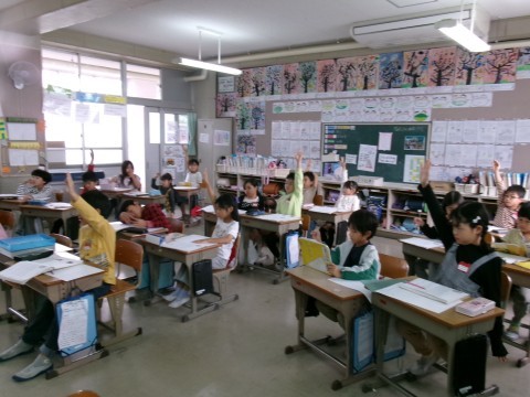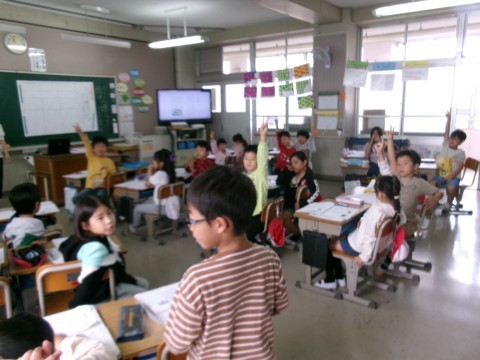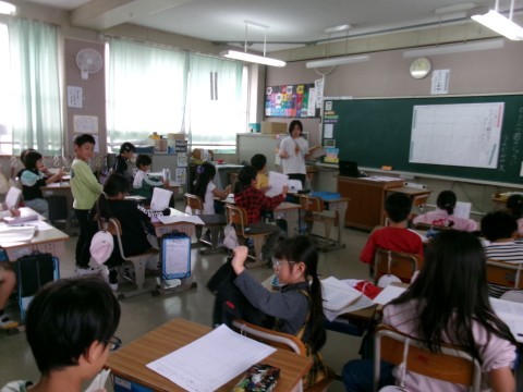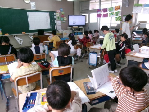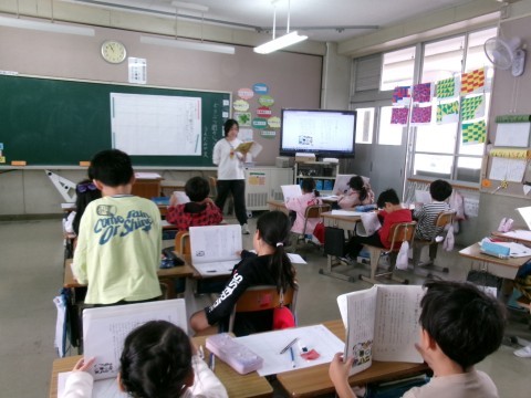 「どうぶつ園のじゅうい」という説明文の教材の学習をしていました。じゅういさんの名前を確認した後,段落ごとに「いつ」「仕事の内容」「そうしている理由や工夫」などの項目を考え,意見の交流をして表にまとめていました。