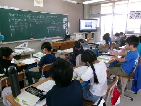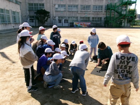 前回虫めがねで太陽光を集めて,黒い紙を燃やす実験をしました。今日はそのまとめで,虫めがねで焦点化するほど紙が熱くなることをまとめていました。その後,前回実験の時に欠席した児童がいたので,再度実験をしていました。