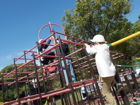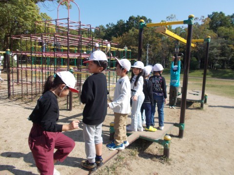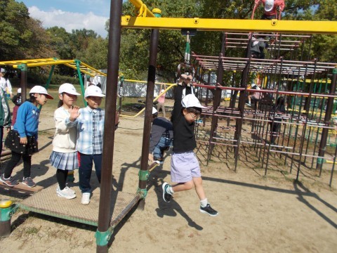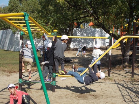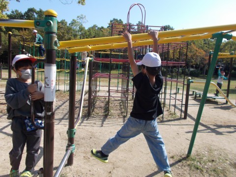 ドングリ拾いの後は、春の校外学習でも遊んだ