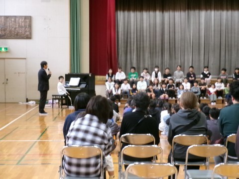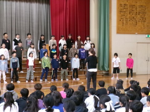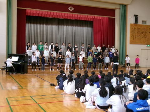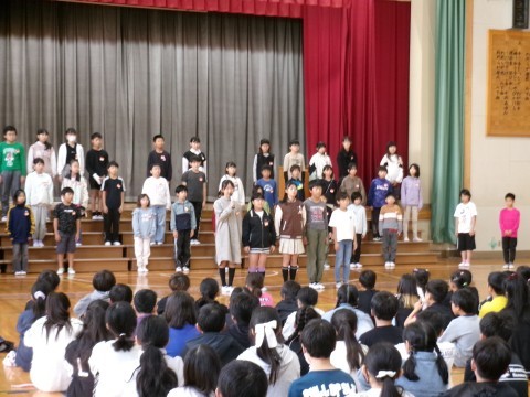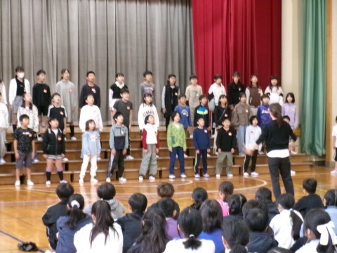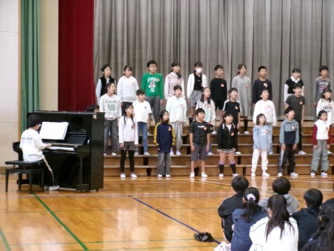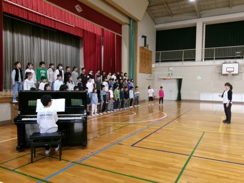 いよいよ明日は,連合音楽会本番です。本校では,5年生が学校を代表して出場します。今日は,これまで一生懸命練習してきた成果を,全校児童に発表することができました。