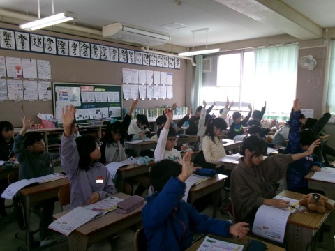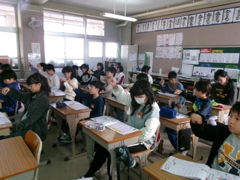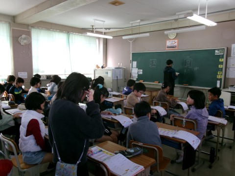 新出漢字の練習をしていました。「貧」と「版」「述」の3文字です。書き順に注意しながら,みんな真剣に練習しています。