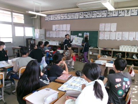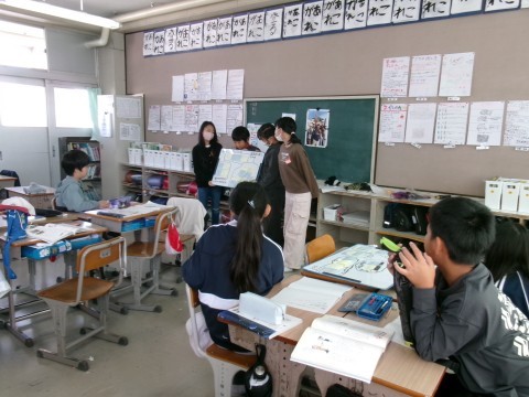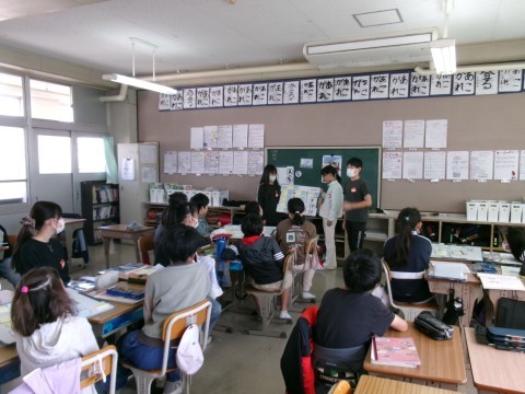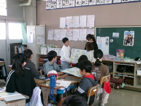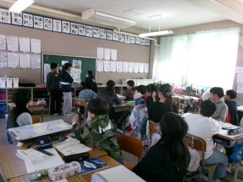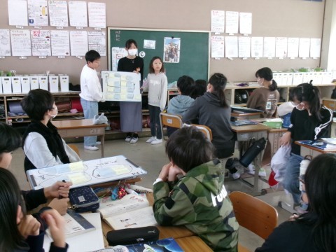 「よりよい学校生活のために」という単元で,「もっと放送を聞いてもらうためには?」というテーマを班で考えていました。今日は,そのアイディアを全員に発表していました。