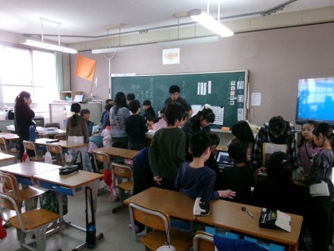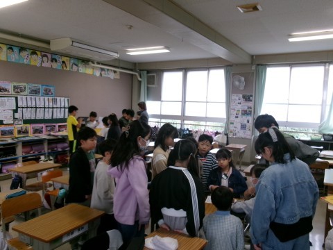 今日は,なかよし活動の日でした。いよいよ明日実施される「八下西フェスティバル」の打ち合わせです。たてわり班ごとに回るので,それぞれの学年のCM動画を見たり,お店を回る順番を決めたりしていました。