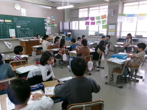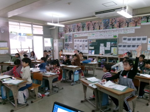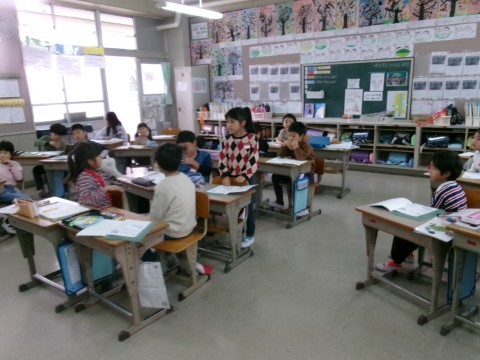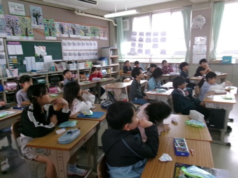 どちらのクラスも,九九の2の段の学習をしていました。これまでの5の段の復習をして,5の段と同じように答えが2ずつ増えていくことが分かりました。また,2組では九九の暗証カードも配っていました。