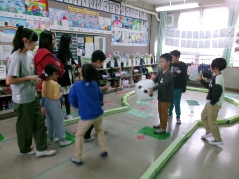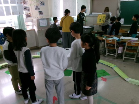 学習したことを活かして,堺市の特産品や古墳などに関するクイズや遊びを考えていました。輪ゴム鉄砲で遊ぶコーナーもありました。