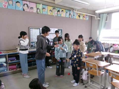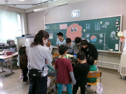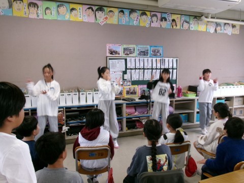 「世界への大冒険~万博はまだ終わらない」というテーマで,中国や韓国,アメリカやフランス,そして日本についてのクイズや遊びをしていました。ミャクミャクっぽいキャラクターも,廊下で宣伝していました。ダンスチームなどもあり,いろいろな方法でお客さんに外国や日本のことを知ってもらったり,遊んでもらったりしています。