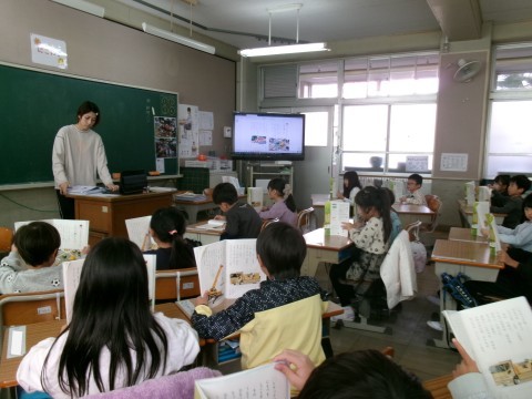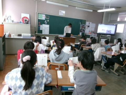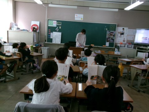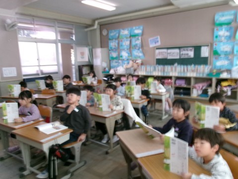 「じどう車くらべ」という説明文の教材の学習に入っていました。今日は音読です。全員で本文を読んでいました。