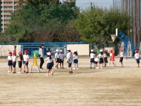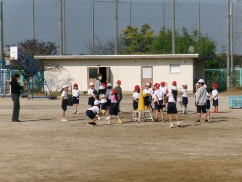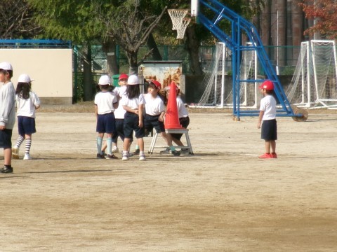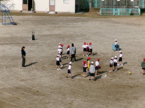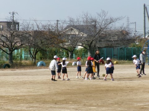 準備運動になわとびをした後,的当てゲームを行っていました。かなり上手にパスしたり,的に当てたりできるようになってきています。