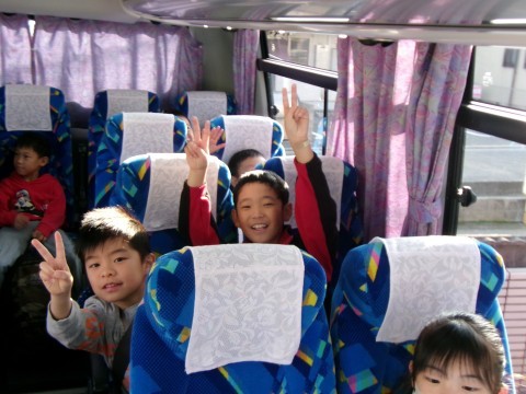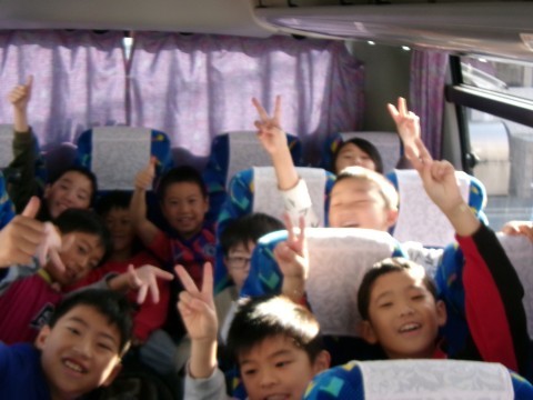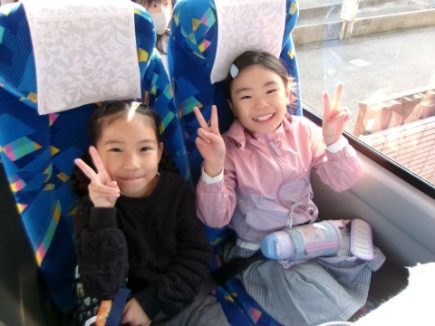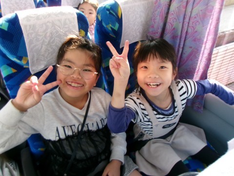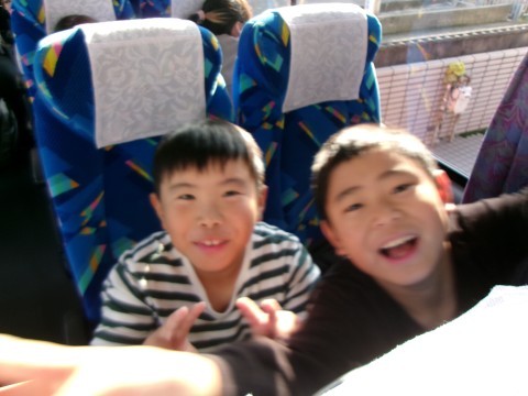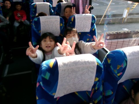 バスの中の様子(1組)です!3年生はじめてのバスに大喜びのみんなでした。