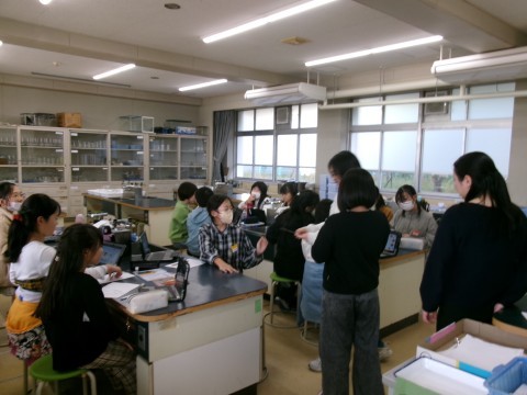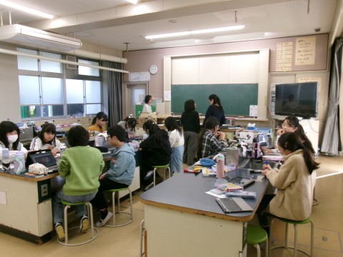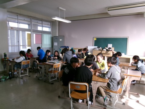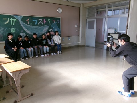 同じく校舎内のクラブ活動の様子です。クラブをしながら卒業アルバム用の写真も撮影していました。